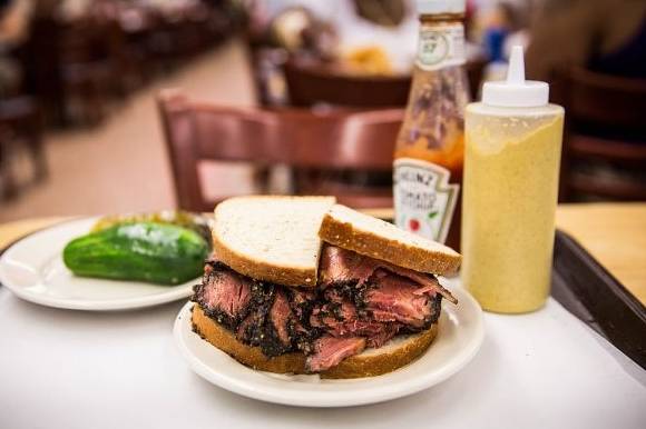 - 特色: 紐約必吃的煙燻牛肉三明治(Pastrami on Rye)!牛肉厚切軟嫩多汁,醃燻香味濃鬱,搭配黑麥麵包和芥末醬,經典中的經典。份量超大!