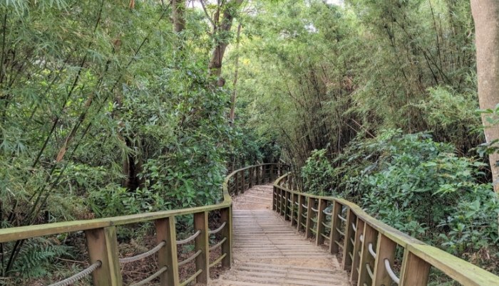 - 雖然難度低,但 全程幾乎都在樹林中,濕氣較重,部分 木棧道、石階 在雨後會 非常濕滑!務必穿 防滑效果好的鞋子,我穿普通運動鞋差點演出滑壘...