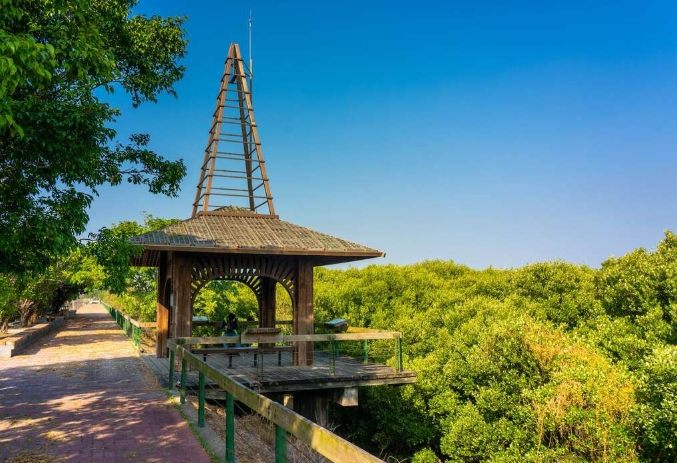 位於東石大橋附近,是觀察濕地生態的好地方。可以租腳踏車沿著堤岸騎行,欣賞紅樹林、招潮蟹、水鳥(記得帶望遠鏡)。這裡遊客較少,更顯寧靜自然。需要自己探索,沒有明顯的觀光設施。