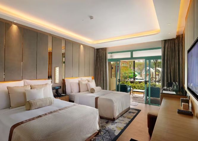 - 特色: 五星級 度假村, 設施超完善: 超大泳池群、人造沙灘、兒童俱樂部、多間餐廳酒吧、購物中心連通。 房間寬敞舒適,部分房型 陽臺直望樂園景觀! 住客有時能享樂園門票優惠 (訂房時確認)。 缺點: 價格 較高 (尤其假日),但 方便性無敵! 真心推薦給重視便利和舒適的家庭。