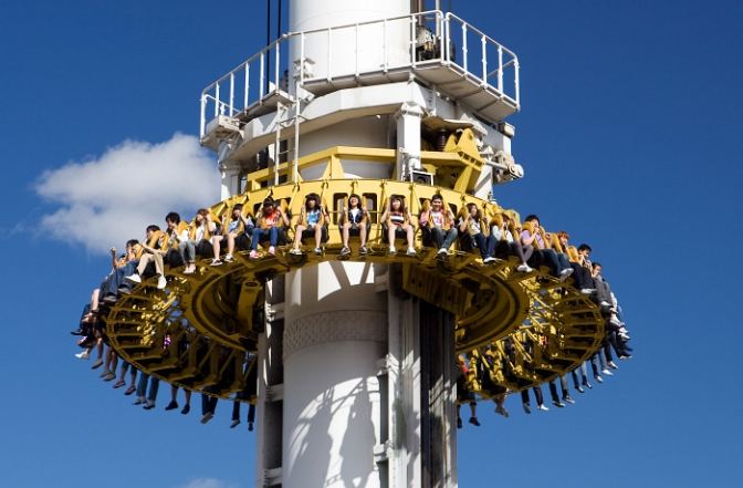 - 特色: 就是直上直下的跳樓機!高度夠,視野好(能看到整個樂園和海港),那種從最高點瞬間墜落的無助感,讓你忍不住尖叫。喜歡純粹失重感的人會愛死它。我覺得它下降的速度和加速度控制得滿好的,不會太粗暴也不會太拖沓。怕高的人光看就腿軟了。