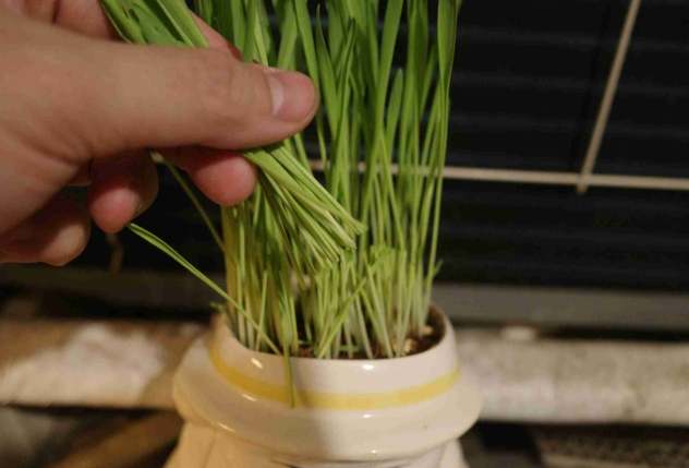 - 黃金高度:15-20公分! 這時小麥草處於營養巔峰,葉片厚實且呈現濃綠色(通常在第一片「分蘗葉」長出後不久)。別貪心等它長太高,過了25公分容易開始老化、纖維變粗、營養價值下降,草腥味也會更重。我有次出國幾天回來,草都長到快30公分了,榨出來的汁液苦澀難喝,最後只能忍痛拿去堆肥。