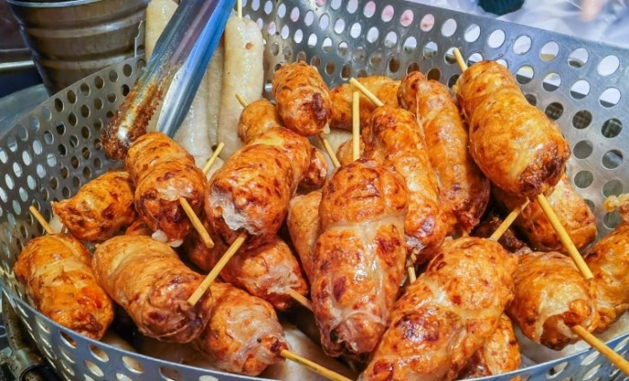 - 特色與亮點: 龙鳯腿绝对是瑞芳的代表性小吃!用猪网油包裹着剁碎的高丽菜、红萝卜、鱼浆等丰富的蔬菜馅料,下锅炸至金黄酥脆。外皮脆得像纸一样,咔嚓一声咬开,里面是湿润鲜甜的蔬菜馅,口感层次非常丰富。 瑞芳美食 的标志,不吃等于没来过!