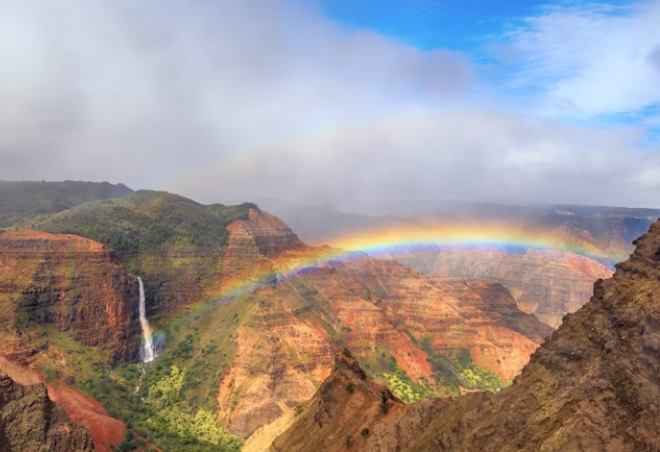 介紹: 被譽為「太平洋的大峽谷」!色彩斑斕的峽谷峭壁(紅、綠、棕等多種礦物質構成),點綴著綠色植被和銀色瀑布,規模宏大,視覺衝擊力強。沿著威美亞峽谷景觀公路(Waimea Canyon Drive, Hwy 550)有多個觀景臺,其中威美亞峽谷觀景臺(Waimea Canyon Lookout)和卡拉雷觀景臺(Kalalau Lookout)視野最佳(後者可直接遠眺部分那帕利海岸!天氣要非常晴朗才看得到)。這條路繼續開就到寇基州立公園(Kōkeʻe State Park),有許多森林步道(如Pīhea Trail)。天氣變化很快,雲霧繚繞是常態,要有耐心等待雲開霧散。 開車上山的路彎曲,需謹慎駕駛。
