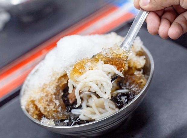 • 員山米苔目冰: 夏天消暑聖品!員山公園附近的「員山米苔目」(中和區員山路148號),米苔目手工製作,口感Q彈,糖水不會死甜,配料傳統樸實。