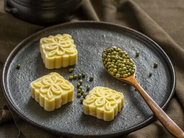 • 綠豆糕 (Pè Bya): 緬甸傳統甜點,用綠豆粉做成菱形小塊,口感粉糯微甜,清爽不膩。華新街上像「金龍商店」等雜貨店可買到盒裝的。