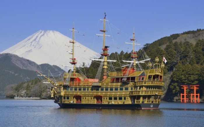 - 介紹: 火山湖美景,搭乘海盜船造型的觀光船是經典體驗!天氣好時,湖面倒映富士山堪稱絕景(看運氣)。元箱根港附近有步道和神社鳥居。