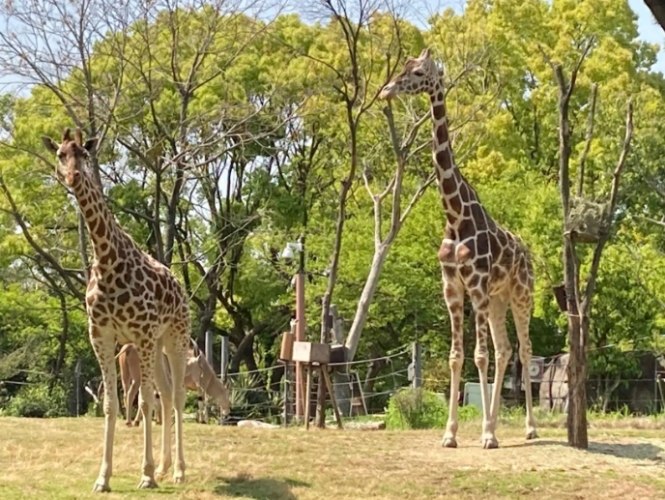 - 長頸鹿: 永遠優雅的巨人。大阪市天王寺動物園有好幾隻長頸鹿,看牠們伸長脖子啃食樹梢的葉子,或在藍天下邁開長腿散步,構圖本身就美得像畫。早上通常比較接近圍欄邊覓食,是拍照好時機。
