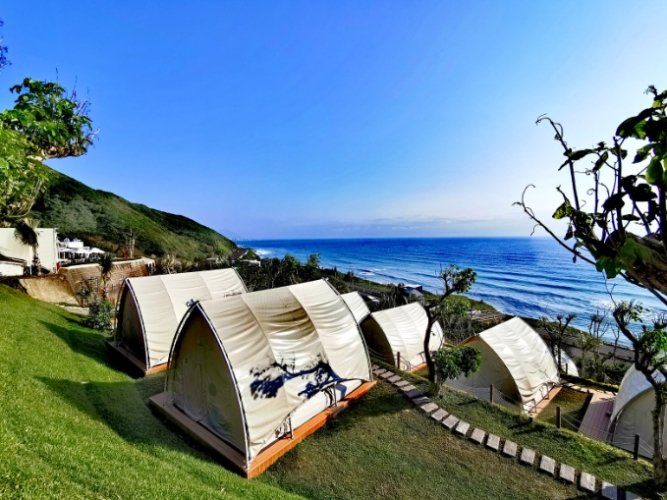 露營地介紹: 哇!第一次開車轉進海崖谷,那個視野真的會讓人忍不住“哇”出來!這個 花蓮露營區 最大的賣點,就是它那個無!敵!海!景!露營區就建在陡峭的海崖上(所以才叫海崖谷嘛),帳篷前面就是一片蔚藍的太平洋,毫無遮擋。講真的,在花蓮看過無數海景,這裡的遼闊感數一數二。他們家的帳篷是那種很漂亮的神殿帳,裡面佈置得挺有格調,不是那種簡陋的克難感覺。晚上聽著海浪聲睡覺,早上睜眼就是日出,那種感覺… 錢花得值!不過啊,風大是真的風大,尤其在秋冬或者東北季風來的時候,帳篷會被吹得呼呼響,怕吵的人可能要斟酌一下,或者選離崖邊遠一點的營位。另外,網紅景點嘛,人潮真的不少,尤其是假日,想拍個獨照都要等。