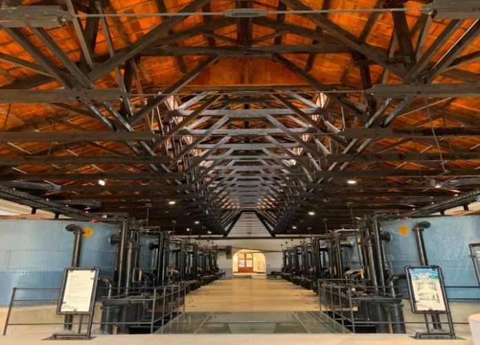 - 必看重點: 這棟建築物本身就是傑作!融合了古典與實用主義的風格。裡面展示了當年用來加壓輸送清水的超大型幫浦(唧筒)機具,雖然核心機件有些已被移走,但留下的基座、管線、還有那標誌性的天車(移動起重機),依然訴說著強大的機械力量。這裡空間感也很棒,挑高、寬敞,你能想像當初機器運轉時的轟鳴嗎?(現在很安靜就是了)。