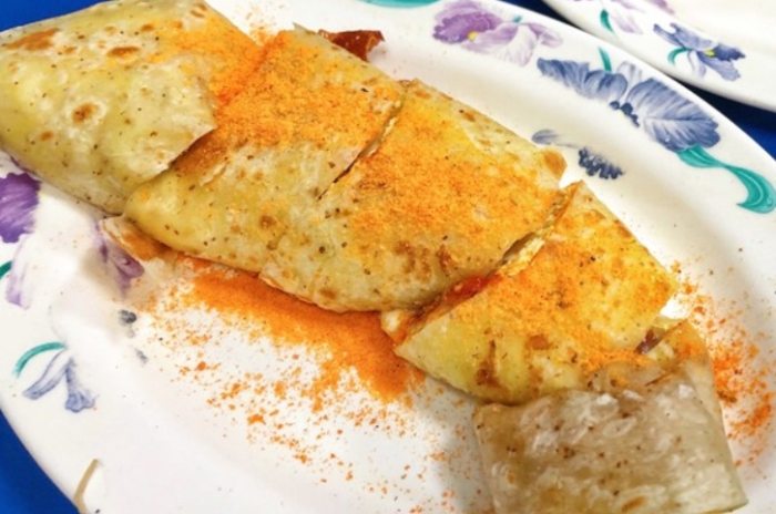 特色與亮點 手工擀的蛋餅皮煎到「恰恰」,夾進高麗菜絲和醬燒肉,淋特調蒜蓉醬油。
