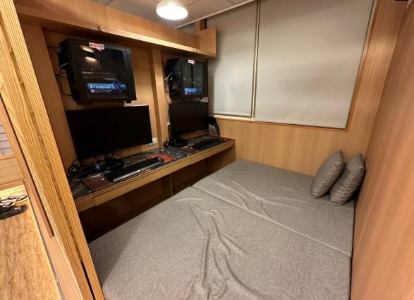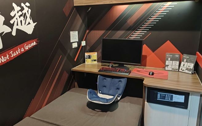 | ⚡ 網路 & 裝置完善: 高速網路、大螢幕電腦是標配,娛樂辦公兩相宜(打Game、追劇、處理郵件超方便)。 | 🛏️ 無法真正平躺: 多數是電競椅或簡易躺椅,無法像床鋪完全伸展,睡醒可能腰痠背痛。 |