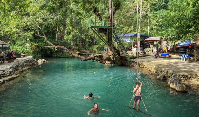 介紹:寮國旅遊的冒險天堂,喀斯特地形配南松河,能划艇、探洞,但商業化重,物價偏高。