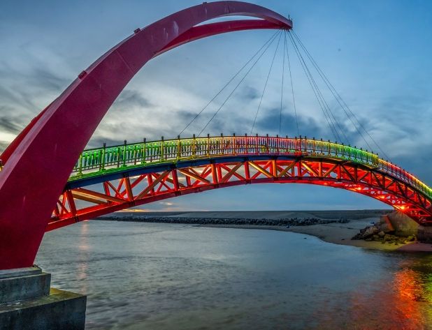 嗨,我是個旅遊迷,跑了快二十年,從臺灣到國外,什麼景點都愛插一腳。今天來聊聊「苑港彩虹橋」,這地方我第一次去是去年夏天,純屬偶然。那時我開車亂晃,看到路標寫著「苑港彩虹橋」,心想這名字挺浪漫,就拐了進去。結果呢?它不像那些大名鼎鼎的景點人擠人,反而有種安靜的美,橋身漆成七彩,橫跨一條小河,旁邊是綠油油的田園。說實話,我本來以為就是個普通小橋,但走近一看,才發現設計蠻用心的,橋面鋪了木板,走起來咯吱響,很有懷舊感。不過我得吐槽一下,如果下雨天去,橋面有點滑,我差點摔一跤,所以建議大家天氣好再去。苑港彩虹橋不算大,但拍照效果一流,尤其傍晚光線斜射,彩虹色澤更鮮明,我在那拍了超多照片,朋友都問這是哪。為什麼叫彩虹橋?當地人說,是因為橋的顏色象徵希望,但我覺得更多是為了吸引遊客啦。總之,如果你厭倦了熱門景點,苑港彩虹橋值得一探,它給我一種意外的驚喜感。