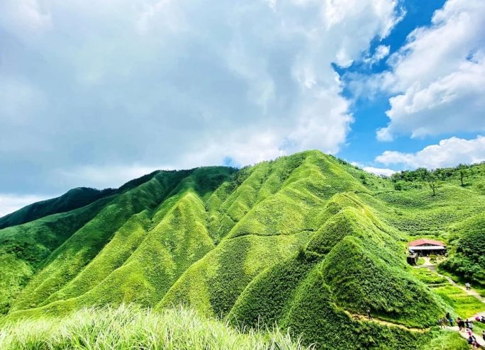 那次站在聖母山莊眺望臺,眼前整片山丘像打翻的抹茶粉,深深淺淺的綠浪隨風擺動,我整個人呆住了!走了十幾年山路的我,自認看遍臺灣山色,但宜蘭抹茶山這種帶點魔幻感的景緻,還真是頭一遭。別被這浪漫名字騙了,它本名是「三角崙山」東南側的產業道路,因為鋪滿短草,遠看就像灑滿抹茶粉而得名(尤其春夏,那綠色飽和到不行)。朋友問我值不值得去?我說,體力允許的話,宜蘭抹茶山絕對是人生必訪清單!不過嘛,要有心理準備,這可不是輕鬆散步的行程。