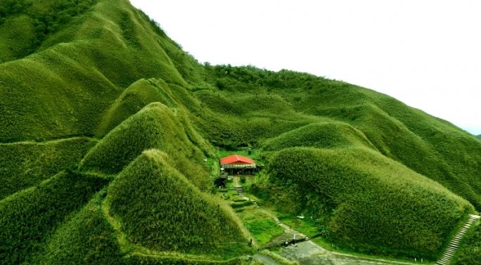 - 這就是經典視角! 整片連綿起伏的綠色山丘就在眼前鋪展開來,像極了灑滿濃鬱抹茶粉的蛋糕。天氣好時視野開闊到不行,甚至能看到龜山島點綴在海平面上。宜蘭抹茶山最精華的畫面,就是在這裡拍到的!
