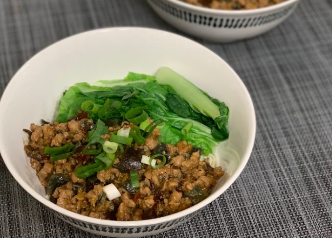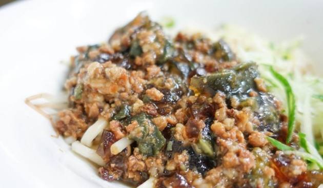 - 青醬皮蛋肉醬:舀兩大匙自製青醬在碗底,再加入煮好的皮蛋肉醬麵拌勻。羅勒、松子的清新香氣,和皮蛋肉醬的濃厚產生有趣的碰撞,很有春夏氣息。
