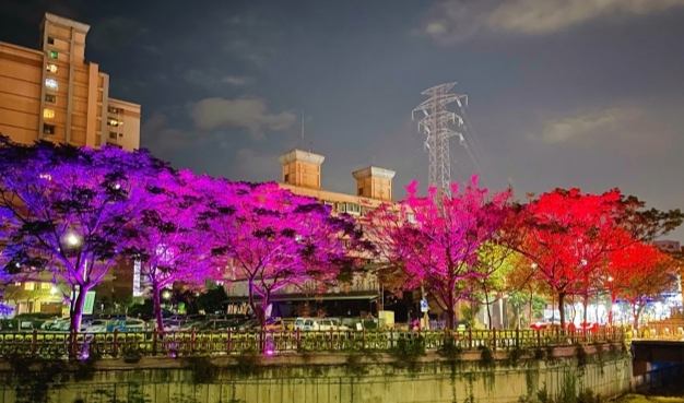還記得幾年前經過鴨母港溝都要掩鼻快走的窘境嗎?現在可完全不一樣了!整治後的 鴨母港溝,簡直是 蘆洲城市蛻變的最佳代言人。透過水質改善、景觀營造,昔日的臭水溝華麗轉身成為一條美麗的親水景觀河廊。我最驚豔的是它的夜間光雕藝術!當夜幕低垂,七彩燈光投射在造型獨特的水岸牆面與水幕上,伴隨著水霧效果,夢幻到讓人忘記身處都市叢林,非常適合晚餐後散步約會。溝岸步道平坦好走,沿途點綴著綠植和休憩座椅,白天夜晚呈現不同風情。假日還能看到不少家長帶著小孩來散步看燈光秀。雖然河道規模無法跟大河流相比,但能在稠密的住宅區中創造出這樣一條兼具生態、休閒與美學的藍帶空間,實在值得一個讚!是體驗蘆洲進步面貌的蘆洲景點。唯一小缺點是部分段落旁邊還是大馬路,聲音有點幹擾。