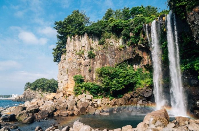 - 下午:正房瀑布(唯一直接入海的瀑布) > 獨立巖(孤石浦)(大長今場景,夕陽美)