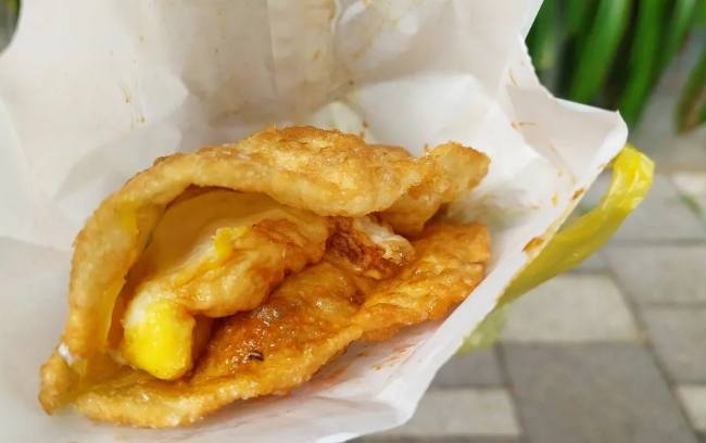 | 推薦店家: | 通常就叫「炸蛋蔥油餅」攤車 (位置大約在東湖路與五分街交叉口附近,夜市入口處) |
