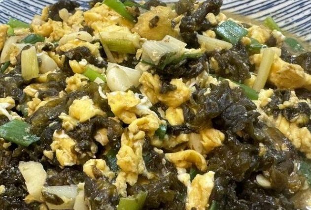 這個名字浪漫吧?它其實是一種陸生藍綠藻,也叫「草木耳」,只在下過雨的草地上才冒出來,嬌貴得很!顏色是深邃的墨綠色,口感超級特別,滑溜中帶著點脆脆的嚼勁,有點像木耳,但更嫩、更水潤。和金黃蓬鬆的雞蛋一起快炒,撒點蒜末,那個香氣...嘖嘖,絕了!清香中帶著獨特的海洋氣息(雖然是陸生的,但確實有股海味),非常獨特。