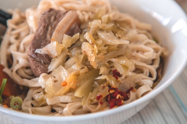 - 必點: 綜合豬血湯 + 乾麵 (細麵) + 記得加辣菜脯!