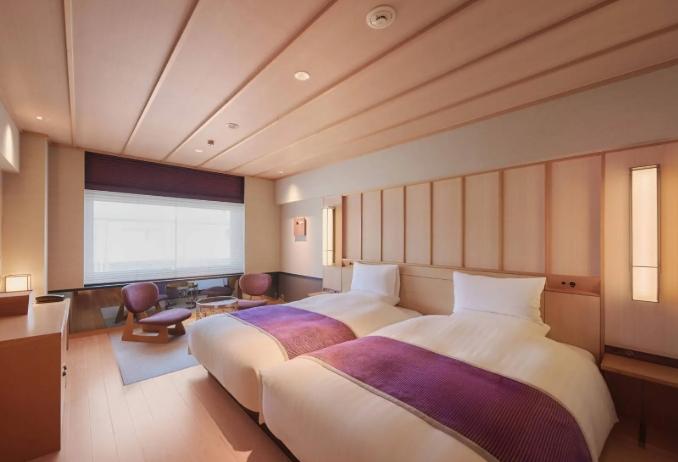 - 房間 & 荷包: 雙人房 (無窗/有窗) 淡季約 ¥15,000 - ¥25,000/晚;高階雙床房 淡季約 ¥22,000 - ¥35,000/晚 (價格浮動大,櫻花楓葉季翻倍是常態)。房間大小在車站旁算OK了,商務型,該有的都有。