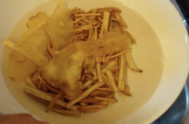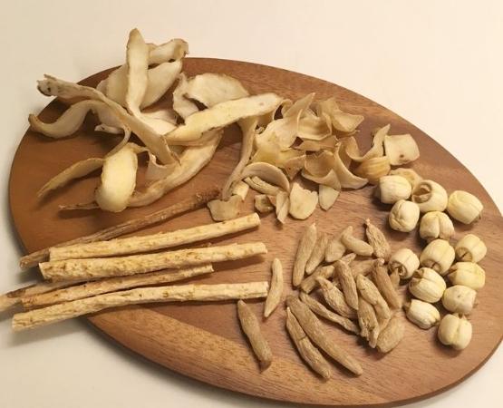 - 玉竹: 這個看起來有點像幹掉的樹根片,摸起來滑滑的。它也是養陰潤燥的好手。用量約 9-12公克。