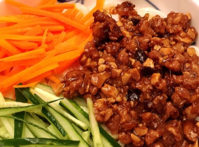 - 然後,拿起筷子,用盡全力拌勻它!讓每一根麵條都裹上閃著油光的深褐醬汁,沾滿豆乾丁和肉末,夾雜著清爽的小黃瓜絲… 光看就餓了!