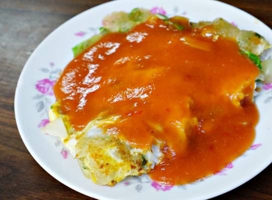 - 特色與亮點: 就是那金黃微焦的「赤赤」(台語:酥脆)口感!粉漿比例是阿伯三十年的獨門秘方,薄透卻Q彈。重點是蚵仔,每天從東石新鮮直送,顆顆肥美飽滿,咬下去爆漿的鮮甜海味,配上特調微甜的粉紅醬,絕配!青菜給得大方,不是幾片葉子敷衍了事。