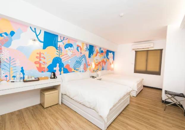 介紹:這家走文青風,大廳掛滿在地藝術品(老闆是原住民畫家)。房間不大但乾淨,床超好睡(我躺下去就昏迷)。去年我帶爸媽來,他們愛死那個陽台景觀(看得到市區街景)。