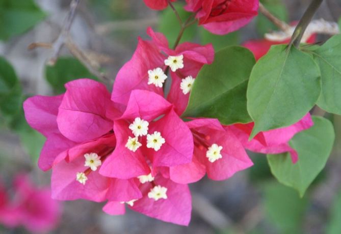 - 戀人們的低語: 關於九重葛花語中那份「無盡的思念」,雖然沒有像玫瑰那樣廣為流傳的經典愛情故事,但在一些地方,特別是它原生地附近的民間傳說裡,九重葛常常和深切、甚至帶著點悲傷的愛戀連結在一起。有一種說法是,它那鮮豔的苞片,是少女為愛人離去而流下的血淚染紅的;另一種則說,它層層包裹的花朵(真正的小白花),如同情人心中藏了又藏、說不出口的千言萬語和綿綿思念。這些故事或許聽起來有點老套?但當你細看一簇九重葛,特別是風吹過時,苞片輕顫,露出裡面小小的白花,那份欲語還休的感覺,還真有點像呢!不過我得說,我家那株大紅的,看起來更像熱戀中不管不顧的熱情,思念什麼的…比較像旁邊那株淡粉色的戲份?
