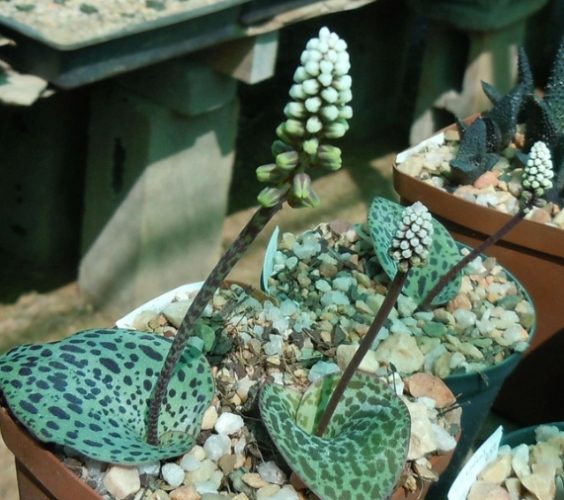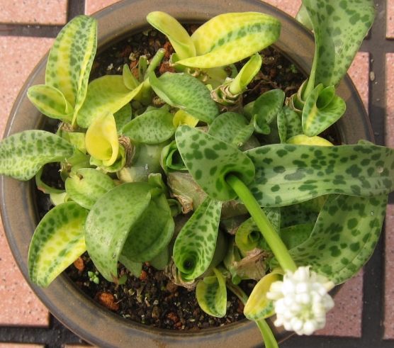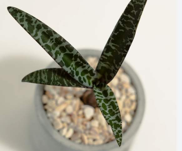 - 匍匐油點百合 (Ledebouria petiolata): 這位就比較特別了,它的葉柄相對較長,整體姿態看起來比較「趴」,沒那麼挺立。葉片質地也感覺稍微薄一點。它喜歡更潮濕一點點的環境(只是稍微!太濕照樣爛給你看)。在臺灣花市相對少見一點,需要特別找。葉形比較像個湯匙。