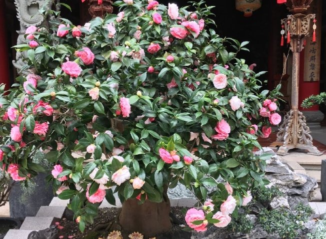 換盆時機也很講究。茶花不愛被隨便搬家。最佳換盆時間是花朵凋謝後、新芽尚未萌發的早春時節(約2月底到3月中)。太晚換,影響新芽生長;太早或開花中換,等著看它掉苞給你看吧!親身教訓啊!換盆時,別手賤把根團整個打散,特別是老株,稍微梳理一下外圍纏繞的根就好。新盆大小比舊盆大個2-3吋就夠了,貪心用大盆?澆水控制不好,等著爛根吧!