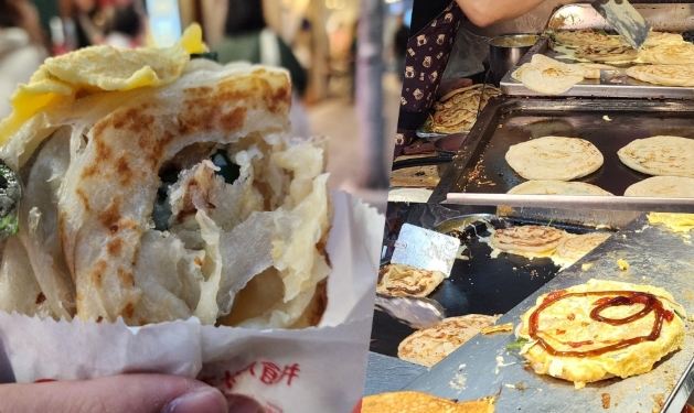 • 特色與亮點: 現場手工擀製、煎烙,層次分明,外皮煎得金黃酥脆到會掉渣,內裡則保持麵香與柔軟度。可加蛋和不同配料(起司、玉米、火腿、培根)。