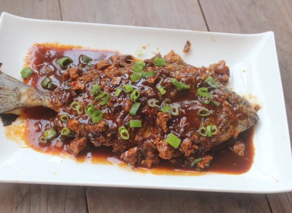- 收汁增稠: 開啟鍋蓋,試試味道(依個人口味調整鹹淡),轉中火稍微收汁,讓醬汁變得濃稠一些,能巴附在魚身上。這時可以用湯勺持續把醬汁淋在魚身上,讓顏色更漂亮。