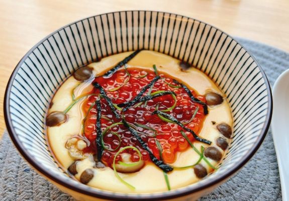 在日料店吃過一次鋪滿鮭魚卵的茶碗蒸,那鮮味至今難忘。複刻起來其實不難,重點在蒸蛋的滑嫩和魚卵的鮮甜搭配。