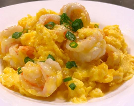 噹啷!一盤金黃滑嫩、蝦仁Q彈的家常美味——蝦仁炒蛋就完成了! 趕緊趁熱盛盤上桌。看著那黃澄澄的蛋包裹著粉嫩的蝦仁,點綴著翠綠的蔥花,冒著熱氣… 這畫面,就是家的味道啊。配上一碗熱騰騰的白飯,簡單,卻無比滿足。