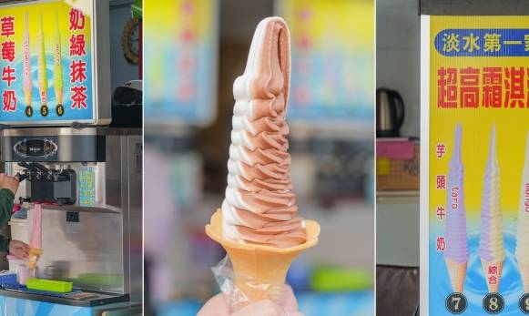 推薦理由: 逛淡水老街,尤其是夏天,人手一支巨無霸霜淇淋幾乎是標準配備!為什麼?因為它就是大!就是過癮!比臉還長不是開玩笑的(拍照打卡神器無誤)。口味選擇超多,從基本的牛奶、巧克力、草莓,到特別的花生、芋頭、芒果等季節限定都有。雖然老實說,味道就是中規中矩的霜淇淋,談不上多頂級,但那種拿著超大一支、邊走邊舔、享受當下悠閒的氛圍,就是淡水獨有的樂趣啊!而且融化速度超快,挑戰你的舔功(笑)。CP值爆表的清涼選擇,視覺系淡水必吃代表!