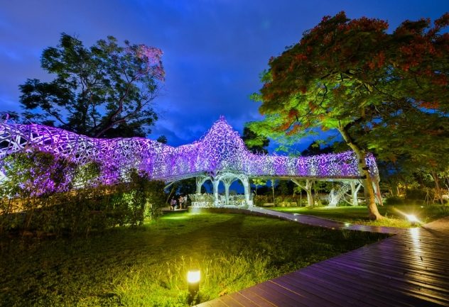 月影潭心: 這幾乎是蘭潭風景區的招牌了!設計師王文志的作品,用鋁片編織成鳥巢般造型,白天看線條很現代,晚上打上燈光倒映在水面,真的美輪美奐,難怪是打卡聖地。最佳拍攝點: