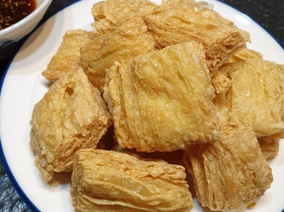 - 當配菜或點心時:薄豆皮2-3片或氣炸豆包1小塊(約30-40克)。