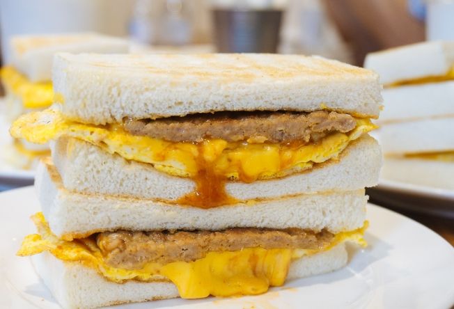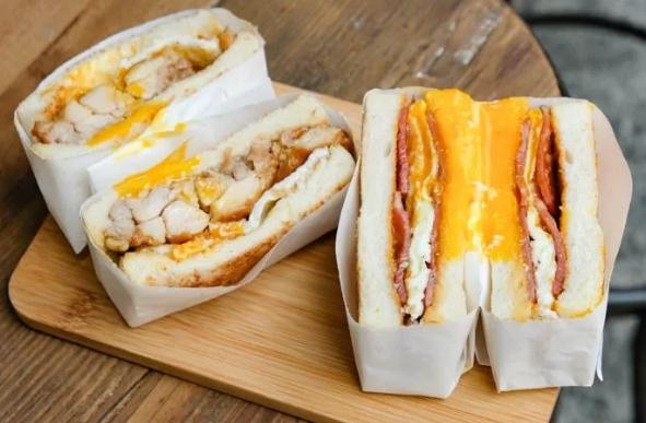 如果你是個無肉不歡、熱愛爆漿蛋黃的「好吃早餐」獵人,良粟商號的炭烤吐司絕對會讓你一試成主顧!他們的招牌是「炭烤雞腿排蛋吐司」跟「爆漿肉蛋吐司」。我尤其愛雞腿排,炭烤香氣超級誘人,腿排醃得入味又多汁,煎得焦香。重點是那顆半熟蛋!吐司用炭火烤過帶點焦脆感,夾著嫩雞腿排、起司片、厚厚的半熟蛋,一口咬下去,蛋液瞬間流出來,混合著肉香和起司,那個口感層次跟邪惡程度,真的無法抵擋啊...(擦口水)。