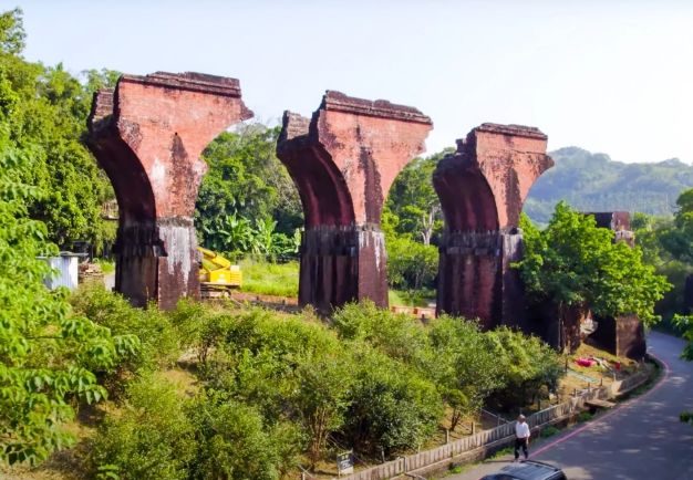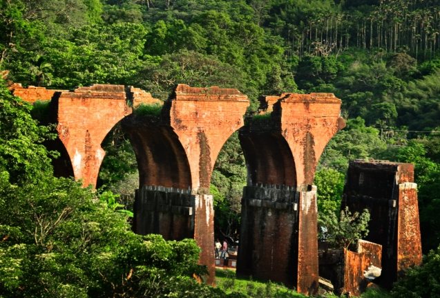 - 這裡能最完整地看到魚藤坪斷橋北端殘存的三座完整橋墩和一處斷開的橋拱。紅磚砌成的巨大結構矗立眼前,非常壯觀。