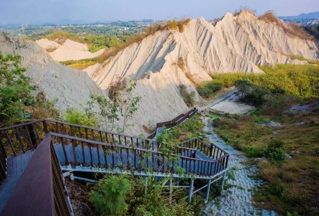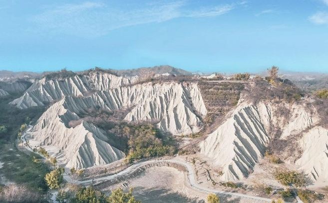 第二個是 草山月世界,這是我蠻推薦的,因為它視野更廣。介紹:草山月世界是另一個類似的景點,有更多的泥岩和植被,走起來像在荒野中漫遊。我記得有一次下午去,陽光斜照,地貌的影子拉長,看起來超有藝術感。地址:臺南市左鎮區草山裡,離月世界天空步道開車約15分鐘。交通:最好開車,公車不太到,路有點窄,開車時要小心。營業時間:全天開放,但部分割槽域可能因天氣關閉,去前最好查一下。