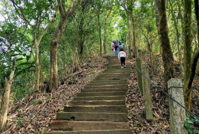 步道難度我給它評為中等偏易。為什麼?因為它有起伏,但坡度不算陡,大部分人都能應付。我朋友五十多歲了,他走完後說還好,只是膝蓋有點酸。不過,如果你有關節問題,可能得注意,因為有些石階比較高。
