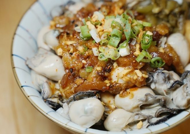 - 介紹:這家 紅到上國外媒體!招牌「男子漢蚵仔蓋飯」鋪滿 肥滋滋的基隆蚵仔,size直逼50元硬幣,淋上秘製肉燥跟蛋酥,鹹香爆表。敢吃辣的,加點 辣椒醬,噴火過癮!