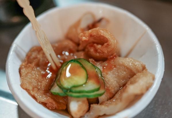 - 介紹:現點現炸!天婦羅(甜不辣)是純魚漿製作,口感 厚實彈牙,不是那種粉粉的。炸得 外酥內軟,沾特調甜辣醬超對味。魷魚腳 也推,炸得香酥脆!