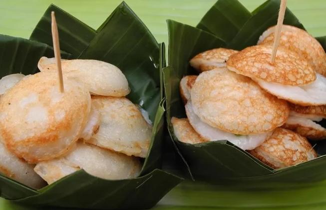 介紹: 傳統的泰南點心,用棕櫚葉編成小盒,倒入由椰漿、糯米粉、椰糖調成的糊,蒸熟而成。口感軟糯帶點彈性,充滿濃鬱的椰糖香和椰漿味,底部有一層鹹香的椰絲(有時是鹹蛋黃),鹹甜交織很特別。冰冰涼涼更好吃!買幾個帶走當伴手禮很適合。