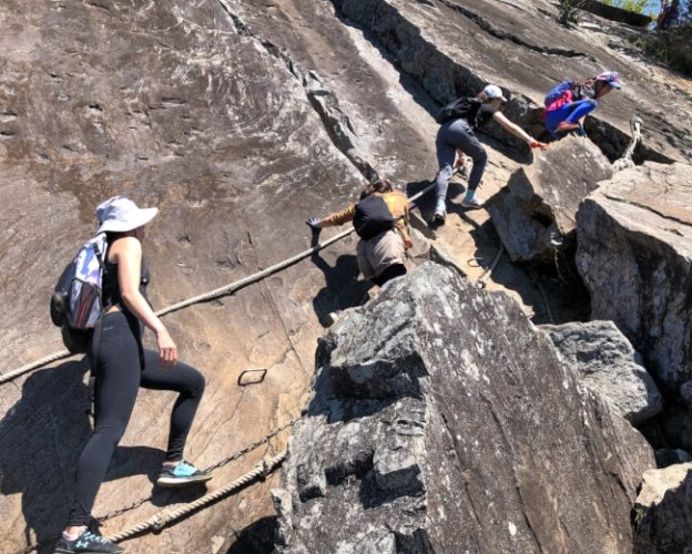 - 結伴同行: 盡量不要獨攀!至少有個同伴互相照應。不小心滑倒扭傷時,有人幫忙求援很重要。