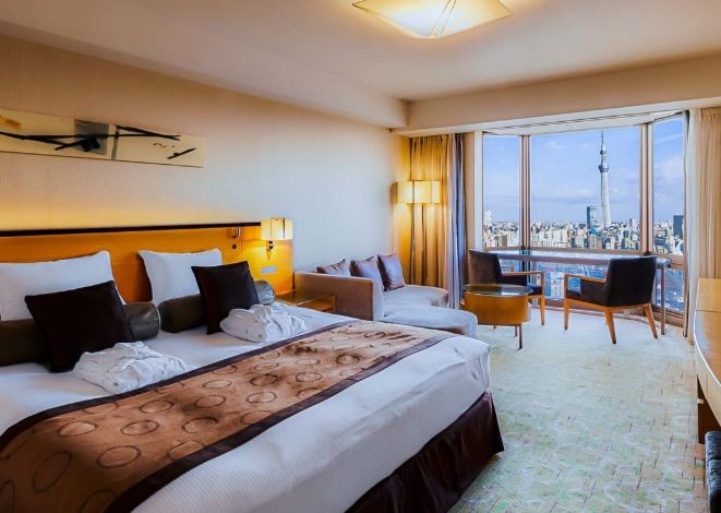 - 介紹: 如果你想同時享受日本晴空塔和淺草寺兩大地標的風情,這家經典老牌酒店是好選擇。位於淺草中心,高層房間的視野超棒,能同時看到晴空塔和淺草寺五重塔📸!雖然走到晴空塔要15-20分鐘,但去淺草寺和逛仲見世通超方便。設施稍舊但維護良好。